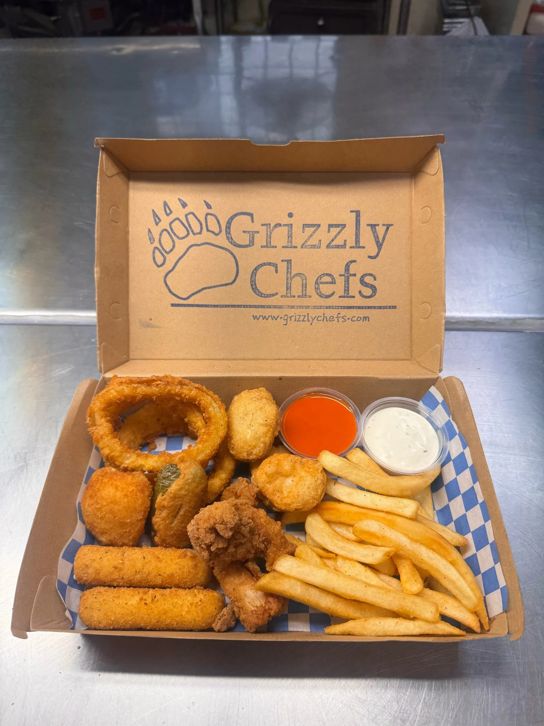 Your late-night cravings just got an upgrade. This stacked box comes loaded with 4 crispy chicken nuggets, 3 onion rings, 3 golden mozzarella sticks, 2 juicy chicken strips, 2 spicy jalapeños, and a side of perfectly seasoned fries—plus sauces to dip, drizzle, and go all in. It’s giving “fine dining”… just way more fun.